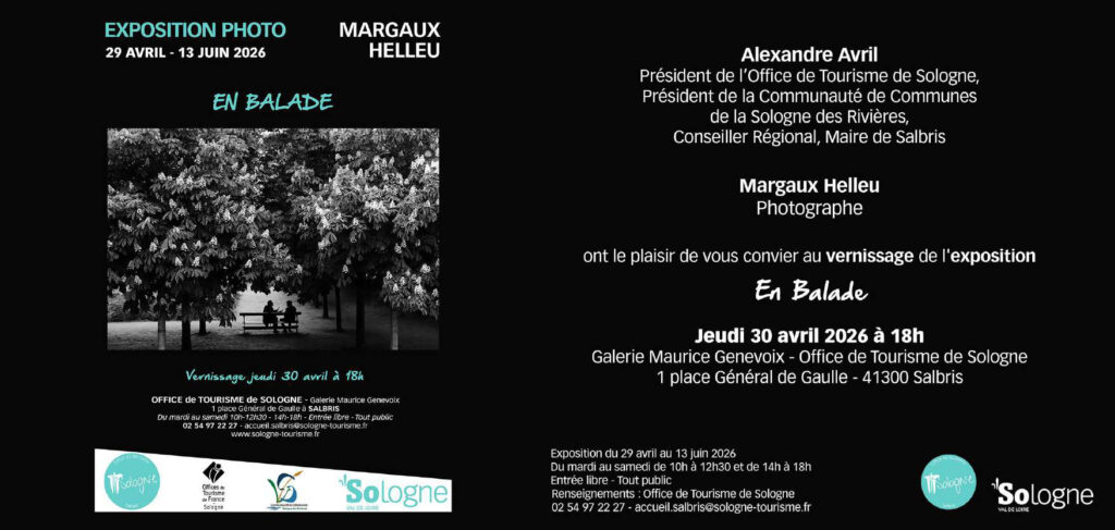 La Ville de Salbris est heureuse d’accueillir la nouvelle exposition de la photographe Margaux Helleu, intitulée « En Balade », qui se tiendra du 29 avril au 13 juin 2026.